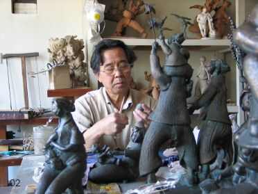 是中国人的东西,意到笔不到的东西。另外形要有,以神为主。可能有些结构、比例不对,但是神对就可以了。中国汉代小陶俑、说唱俑那个气势、那个感觉、那个味道是对的。我觉得中国的好多东西都是在似与不似之间的。当然到了汉代之后,外边影响大了,写实、比例、解剖都来了,我这里面也有解剖的东西,但不是很强调。你学了的东西很难抛开,学的时候你没有感觉到多么难,你想抛开学校学的东西,绝对太难了,你要找到自己的语言,太难了。有的人从学校出来到现在一直没有找到,一辈子没找到,大多数都是没找到,有部分人找到了,他是经过很多的辛苦的,所以不是说一下子找到了。所以说,个人的艺术语言风格的形成,我认为不是设计的,而是个人的阅历、功力等等长久而自然地形成的。我的人生是这样过来的,是那个味道,中原黄土的感觉,没办法,跟刘士铭老师一样,他的东西很好,我要做他的东西也做不出来,黄河边上的感觉我做不出来,每个人都是独特的,我发现找到个人语言太难了。