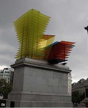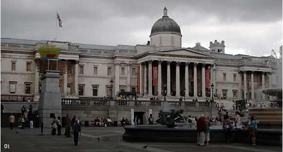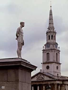 我以伦敦特拉法加广场的第四根柱基为例。即使不能说是最有名的景点,特拉法加广场至少被很多人看作是伦敦的焦点之一。除了它作为主要的旅游地之外,特拉法加广场几十年来一直是国家庆典以及政治和社会集会场所。在市长的新提议下,广场近来更加亲近游人,更具欧洲广场的布局特色。