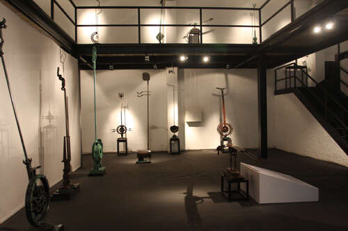 本次展览共展出雕塑家林岗的个人雕塑作品三十余件,这些作品是林岗利用现代工业机械零件,结合艺术手法重组安装制成的一批现代金属雕塑,重组后的雕塑作品多具有类似“乐器”的外形,如二胡、大提琴、琵琶等,用沉静平淡的方式,演奏着 “大音希声”的艺术追求。